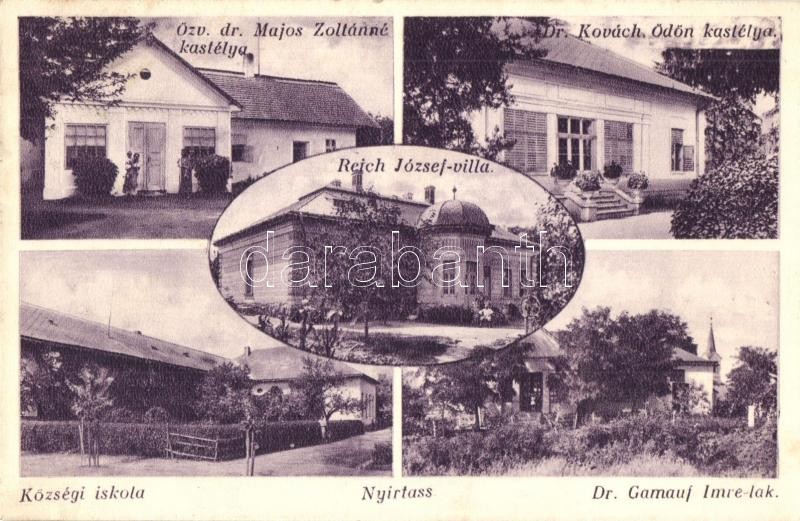 Beschreibung: Nyírtass, Dr. Kovách Ödön kastélya, Reich József villa, Özv. dr. Majos Zoltánné kastélya, Községi iskola, Dr. Gamauf Imre lak (EK)