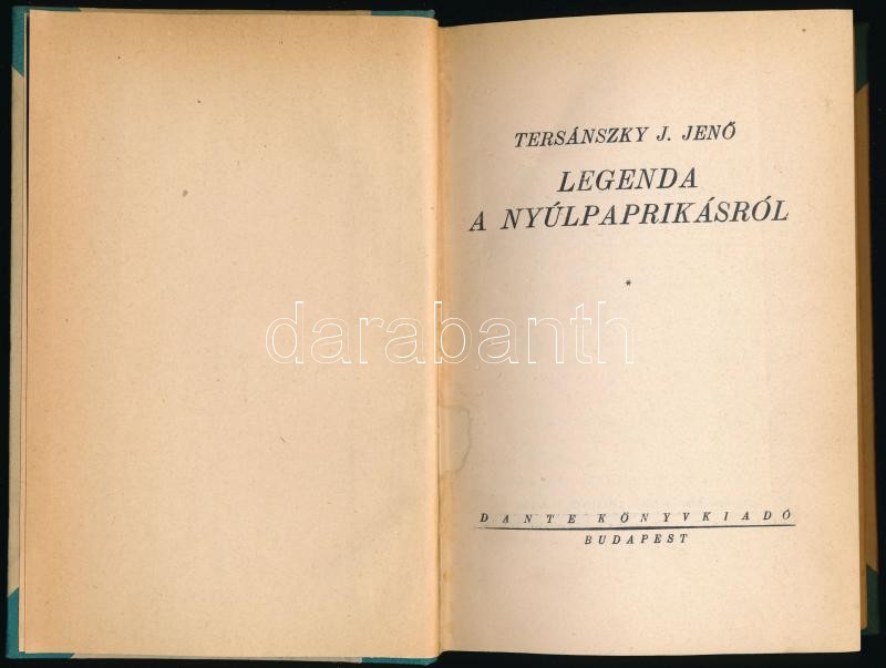 Tersánszky J. Jenő: Legenda a nyúlpaprikásról. Dante Új Könyvtár. Bp.,... https://www.darabanth.com/de/326-Fernauktion/326.0/Bucher/Bucher-Andere-kuriositaten~1500020/Tersanszky-J-Jeno-Legenda-a-nyulpaprikasrol-Dante-Uj-Konyvtar-Bp-1936-Dante-189plus3-p-~II1817805