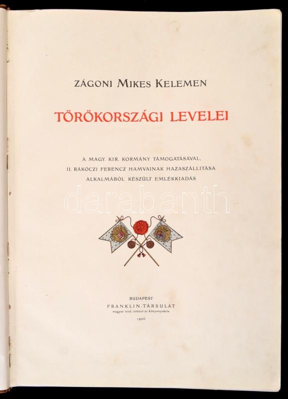 Zágoni Mikes Kelemen: Törökországi levelei. Bp., 1906, Franklin Társul... https://www.darabanth.com/de/326-Fernauktion/326.0/Bucher/Bucher-Andere-kuriositaten~1500020/Zagoni-Mikes-Kelemen-Torokorszagi-levelei-Bp-1906-Franklin-Tarsulat-Diszes-borkotesbe~II1814305