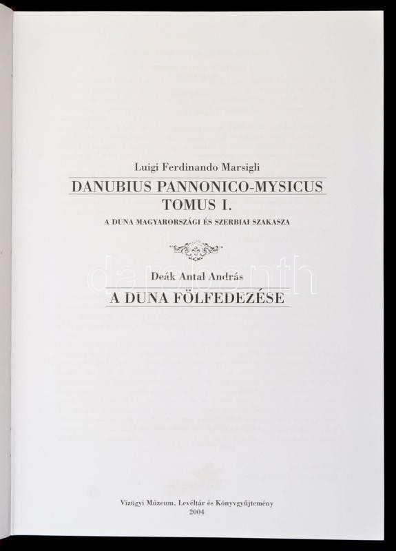 Beschreibung: Marsigli, Luigi Ferdinando: Danubius Pannonico-Mysicus Tomus I. A Duna magyarországi és szerbiai szakasza; Deák Antal András: A Duna fölfedezése. Bp., VÃzügyi Múzeum, Levéltár és Könyvgyűjtemény. MűbÅ‘r kötés, fordÃtva kötve, kötésen kis sérüléssel, egyébként jó állapotban.