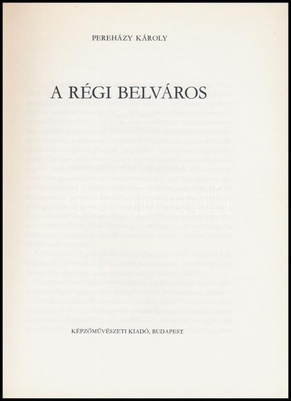 Pereházy Károly: A régi belváros. Bp., 1982, Képzőművészeti Kiadó. Kiadói egészvászon kötés, kiadói papír védőborítóval.