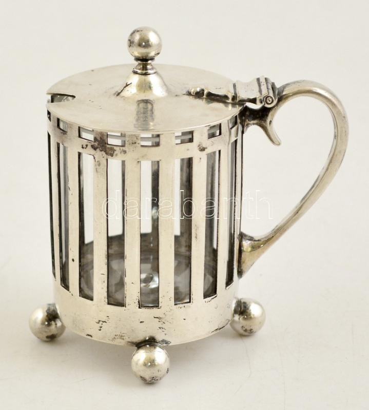 Beschreibung: Robbe jelzett ezüst mustártartó, üveg betéttel / Silver mustard holder with glass part. Nett: 118 g, 9 cm