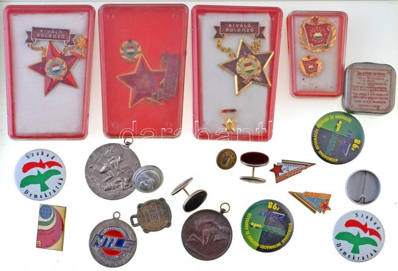 Beschreibung: ~24db-os vegyes jelvény, kitüntetés, sportérem, tok és gomb tétel T:vegyes