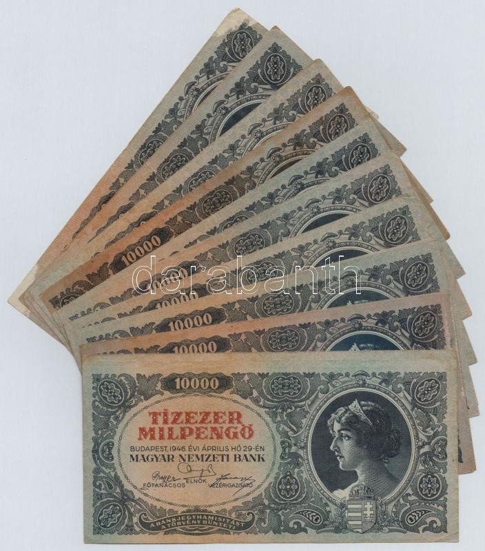 1946. 10.000MP (15x) T:III,III- https://www.darabanth.com/de/326-Fernauktion/326.0/Numismatik/Ungarische-Banknoten~2000007/1946-10000MP-15x-TIII-III-~II1816010