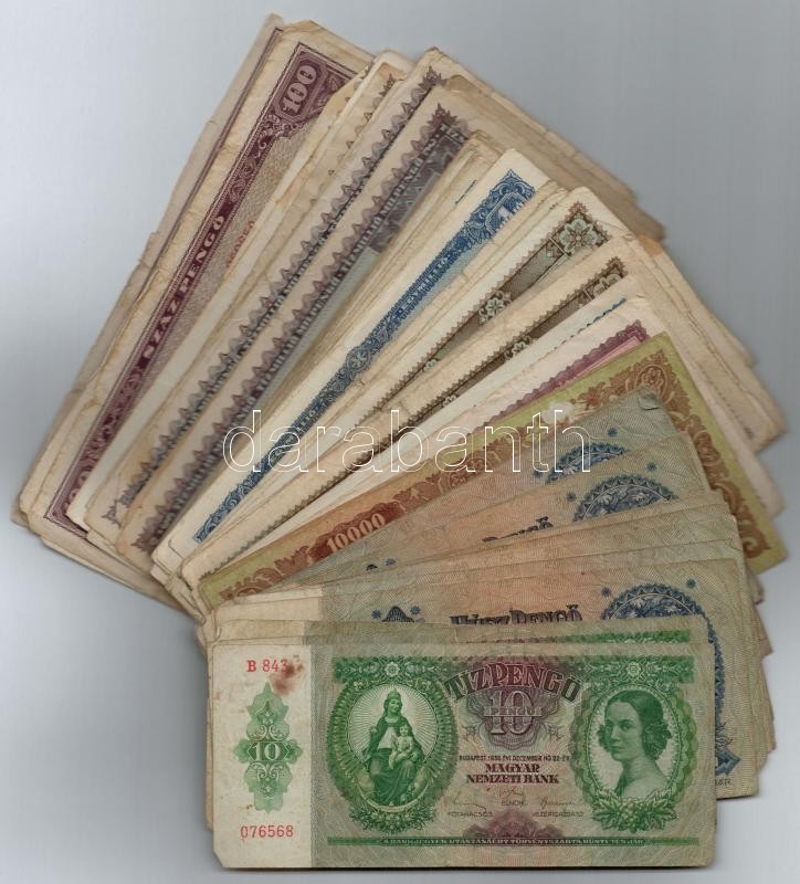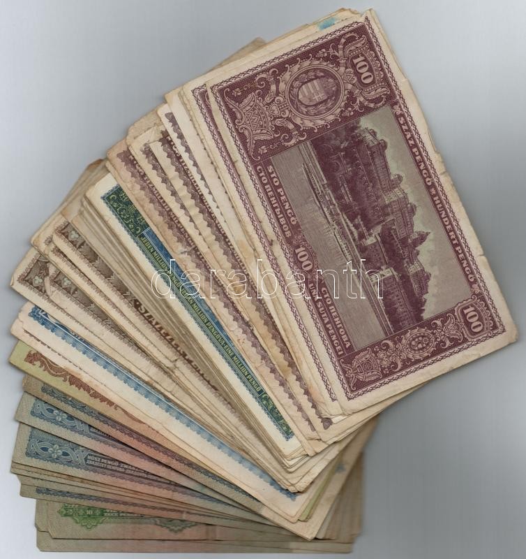 Vegyes: 94db-os pengő bankjegy tétel T:III-IV https://www.darabanth.com/de/326-Fernauktion/326.0/Numismatik/Ungarische-Banknoten~2000007/Vegyes-94db-os-pengo-bankjegy-tetel-TIII-IV~II1814683