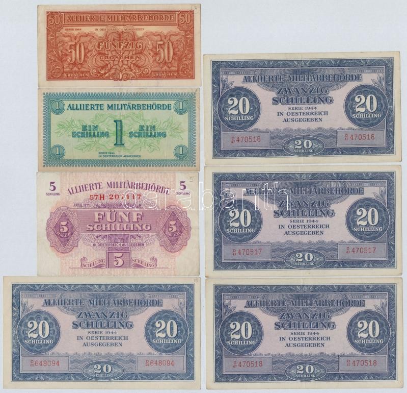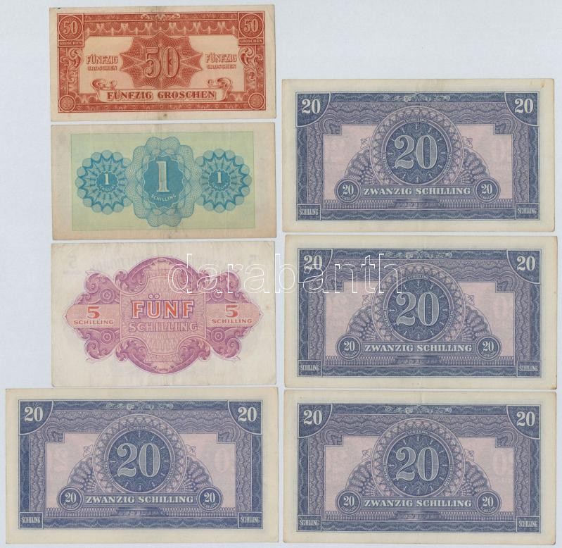 Beschreibung: Ausztria / Szövetséges megszállás 1944. 50gr + 1Sch + 5Sch + 20Sch (4x) közte 3db sorszámkövető! T:III