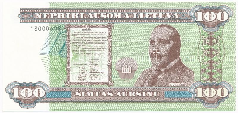 Beschreibung: Litvánia 2018. 100 névértékű szuvenír bankjegy T:I