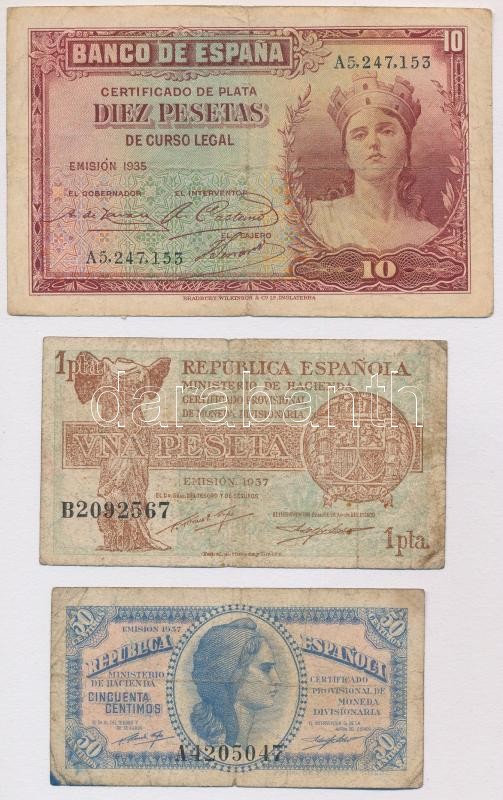 Spanyolország 1928. 1P + 1931. 25P + 50P + 1935. 10P + 1937. 50c + 1P ... https://www.darabanth.com/de/326-Fernauktion/326.0/Numismatik/Weltweit-Banknoten~2000012/Spanyolorszag-1928-1P-plus-1931-25P-plus-50P-plus-1935-10P-plus-1937-50c-plus-1P-TIII-III--Spain-1928-100-P~II1813708