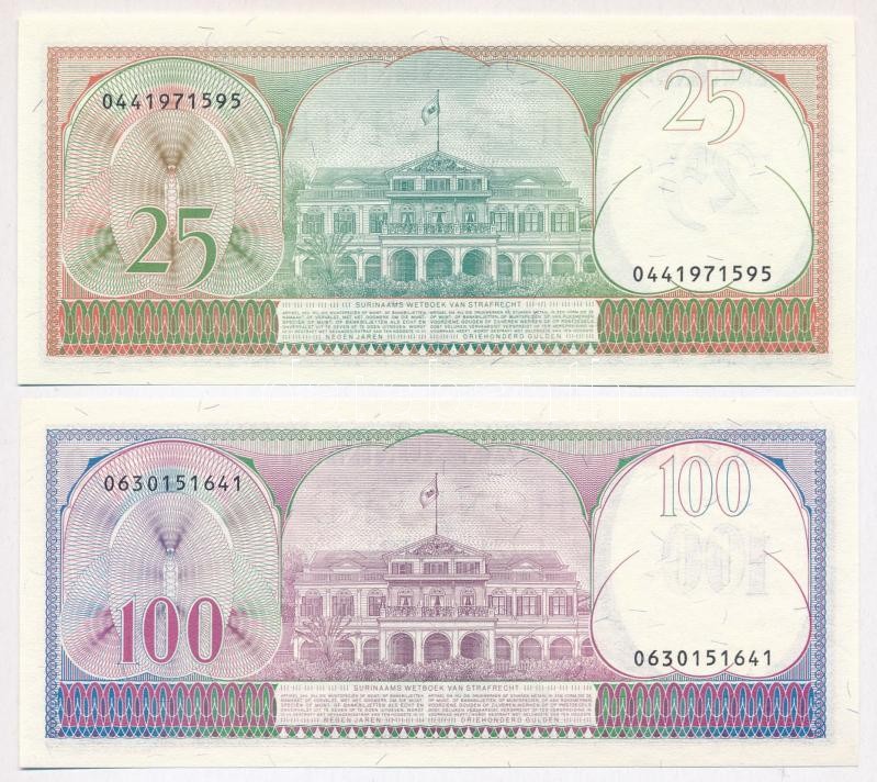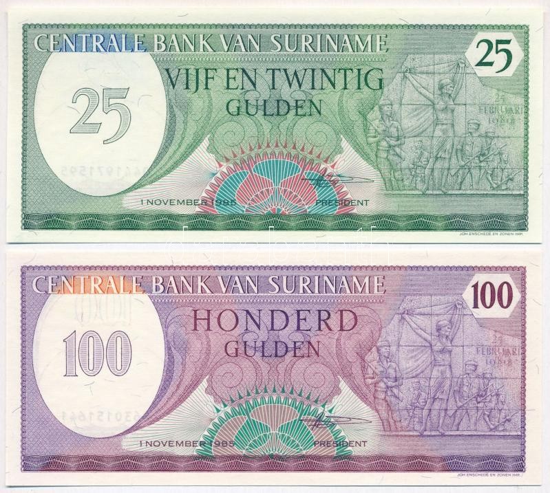 Suriname 1980. 25 Gulden + 100 Gulden C:UNC