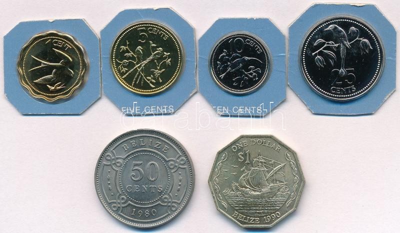 Belize 1975-1990. 1c-1$ (6xklf) négy érme forgalmi sorból kivágva T:1,1-