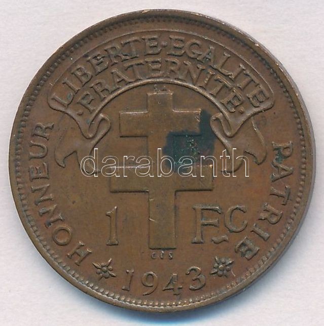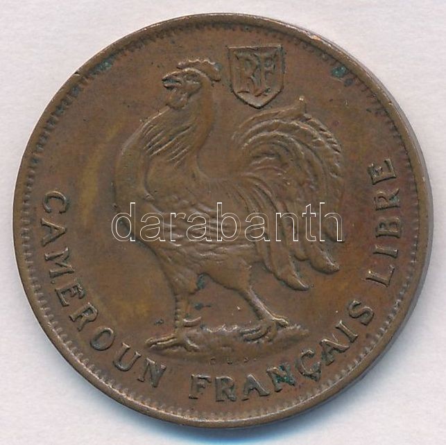 Cameroo... https://www.darabanth.com/de/326-Fernauktion/326.0/Numismatik/Weltweit-Munzen~2000013/Kamerun-Francia-mandatumterulet-1943-1Fr-Br-T2-kis-patina-Cameroon-French-mandate-1943-1-F~II1816592