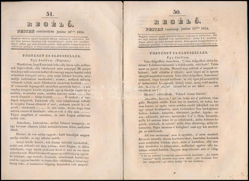 1834 a Regélő 50-51. száma, érdekes írásokkal https://www.darabanth.com/de/327-Fernauktion/327.0/Andere-Sammelgebiete/Drucksachen~1500031/1834-a-Regelo-50-51-szama-erdekes-irasokkal~II1820845