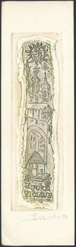 Beschreibung: Katauskas, Savinijus (1936- ): Ex libris J. Jurevičiaus, egyedi mélynyomás, papír, jelzett, 14,5×4 cm /