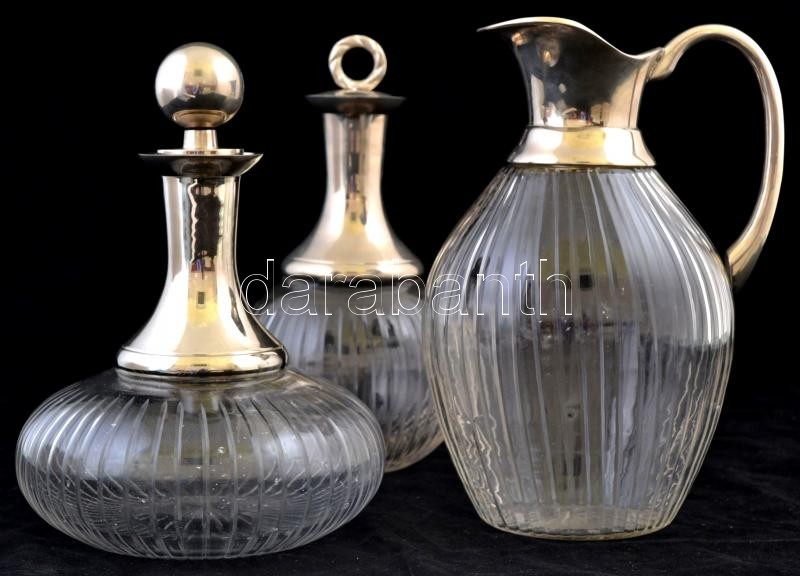 Beschreibung: Art deco kiöntő készlet ( 3db), csiszolt üveg alpakka felső résszel, jelzés nélkül, m:22-25 cm