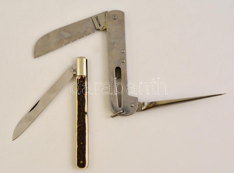 Beschreibung: Bicska ill. többfunkciós kés, tokban, különböző méretben