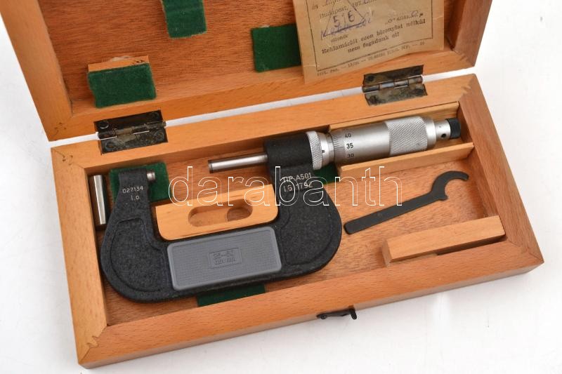 Bp., MOM mikrométer, fa dobozban https://www.darabanth.com/de/327-Fernauktion/327.0/Andere-Sammelgebiete/Flohmarkt~1500011/Bp-MOM-mikrometer-fa-dobozban~II1824303