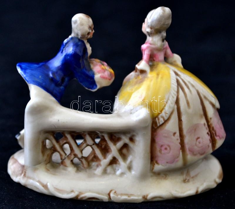 Beschreibung: Rokokó párt ábrázoló jelzett német porcelán / Rococo couple German porclain 8 cm