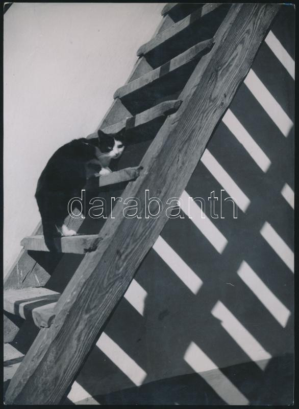 Beschreibung: 1936 Szendrő István (1908-2000): Fel a padlásra, jelzés nélküli vintage fotóművészeti alkotás a szerző hagyatékából, 23x17 cm