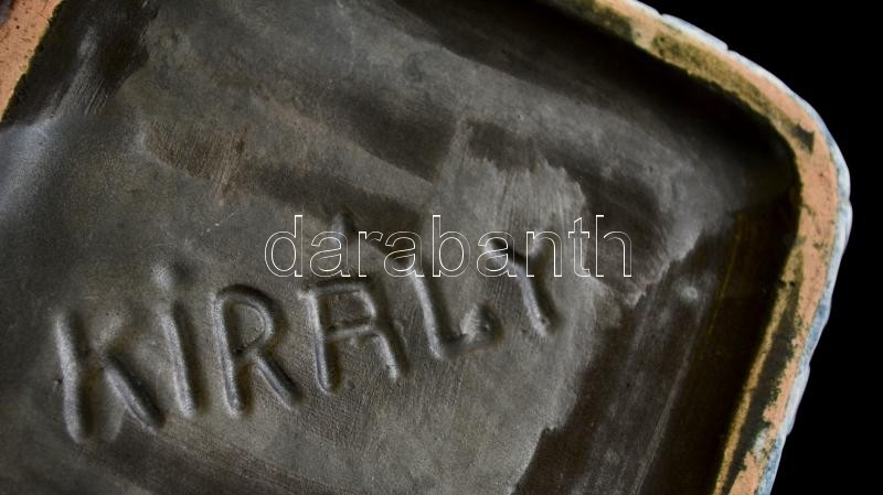 Beschreibung: Király repesztett mázas kerámia hamutál, jelzett, hibátlan, 12×12×4 cm