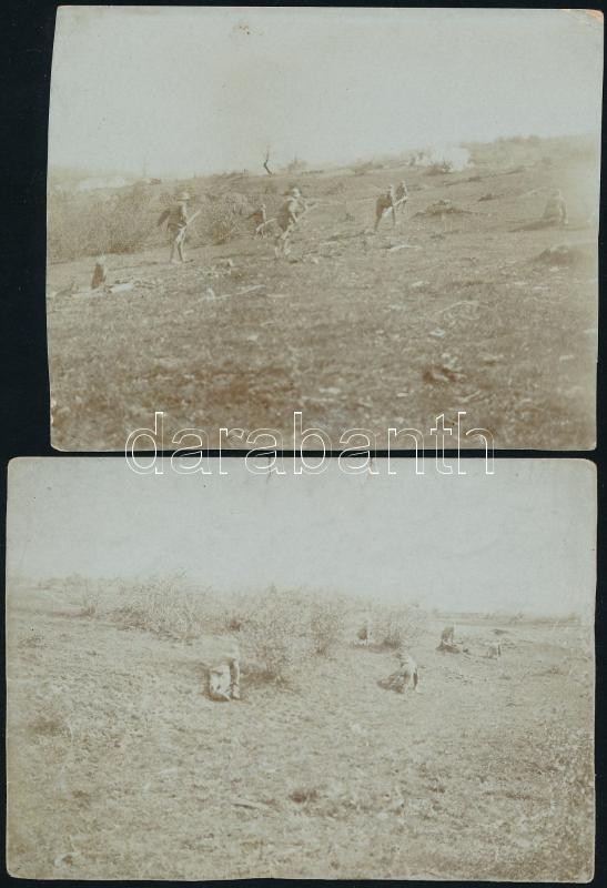Beschreibung: cca 1914-1918 Rohamcsapatok előrenyomulása, 2 db fotó 8,5×11,5 cm