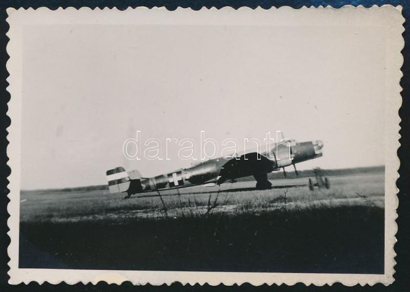 Beschreibung: cca 1942 Junkers Ju 86 közepes bombázó a Magyar Királyi Honvéd Légierő felségjelzésével, fotó, 6×8,5 cm