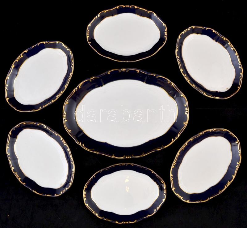 Beschreibung: Zsolnay Pompadour mintás ovális tál készlet (7 db), jelzett, kopott, 24×17 cm (6×), 37×26 cm