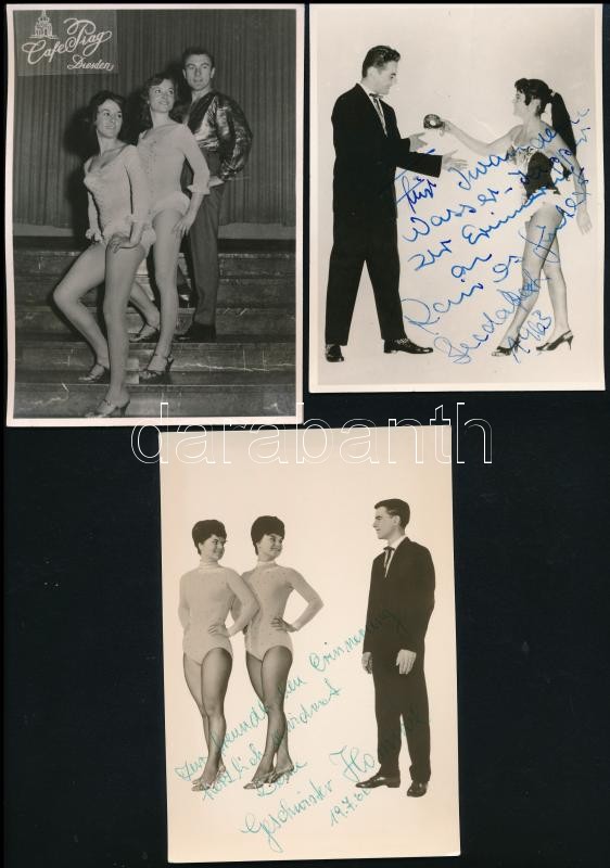 Beschreibung: 1963-1966 Revüsztárok aláírásai fotólapokon