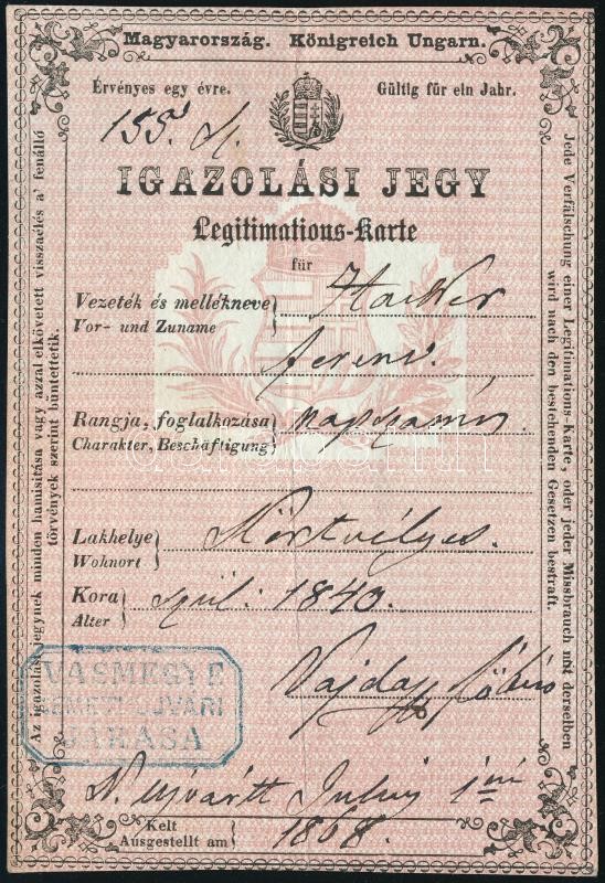 1869 2x4kr + 7kr okmánybélyeg igazolólapon / Document stamps on id https://www.darabanth.com/de/327-Fernauktion/327.0/Andere-Sammelgebiete/Stempelmarken~1500015/1869-2x4kr-plus-7kr-okmanybelyeg-igazololapon-Document-stamps-on-id~II1773828