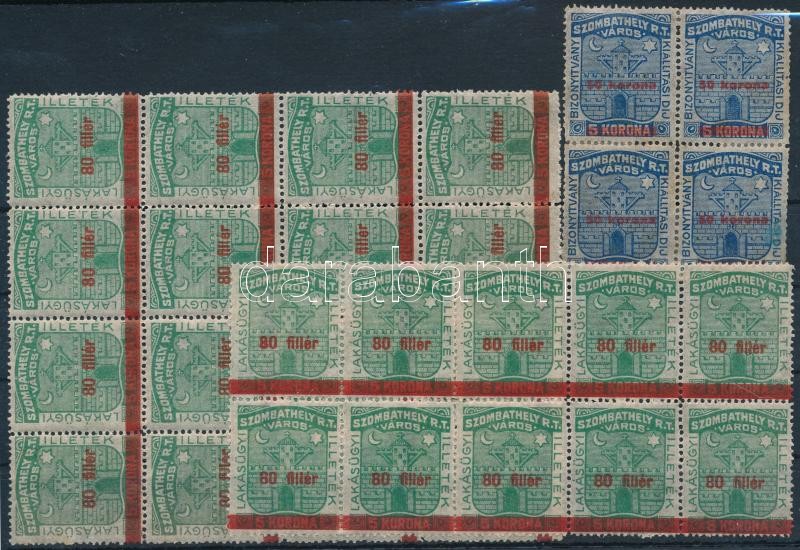 Beschreibung: Szombathely helyi kiadású 30 db okmánybélyeg összefüggésekben, stecklapon (85.000)