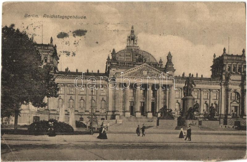 Berlin, Reichstagsgebaude / Reichstag building, statue (vágott / cut) https://www.darabanth.com/de/327-Fernauktion/327.0/Ansichtskarten/Deutschland~1000036/Berlin-Reichstagsgebaude-Reichstag-building-statue-vagott-cut~II1821339