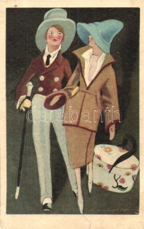 Fashion couple, art postcard (r) https://www.darabanth.com/de/327-Fernauktion/327.0/Ansichtskarten/Kunstlerkarten~1000070/Fashion-couple-art-postcard-r~II1824503