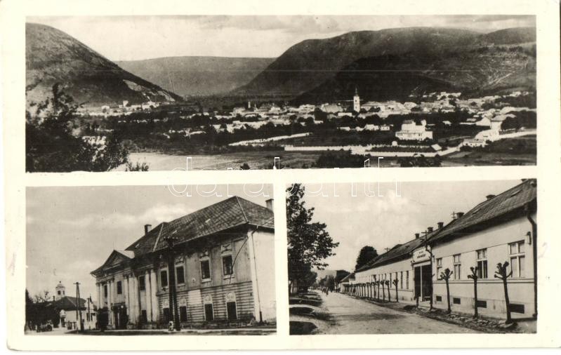 Beschreibung: Pelsőc, Pelsücz, Plesivec; Látkép, községháza, hadikórház / general view, town hall, military hospital