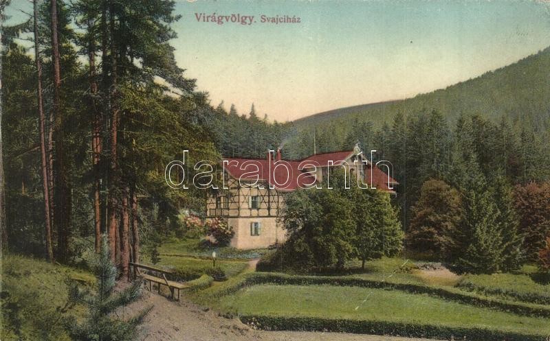 Tátra, Virágvölgy, Blumenthal; Svájci ház / Swiss Villa https://www.darabanth.com/de/327-Fernauktion/327.0/Ansichtskarten/Slowakei~1000008/Tatra-Viragvolgy-Blumenthal-Svajci-haz-Swiss-Villa~II1823253
