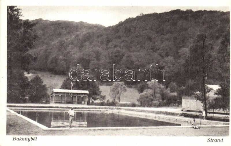Bakonybél, Strand, medence. Deutsch Sándor kiadása https://www.darabanth.com/de/327-Fernauktion/327.0/Ansichtskarten/Ungarn~1000006/Bakonybel-Strand-medence-Deutsch-Sandor-kiadasa~II1823714