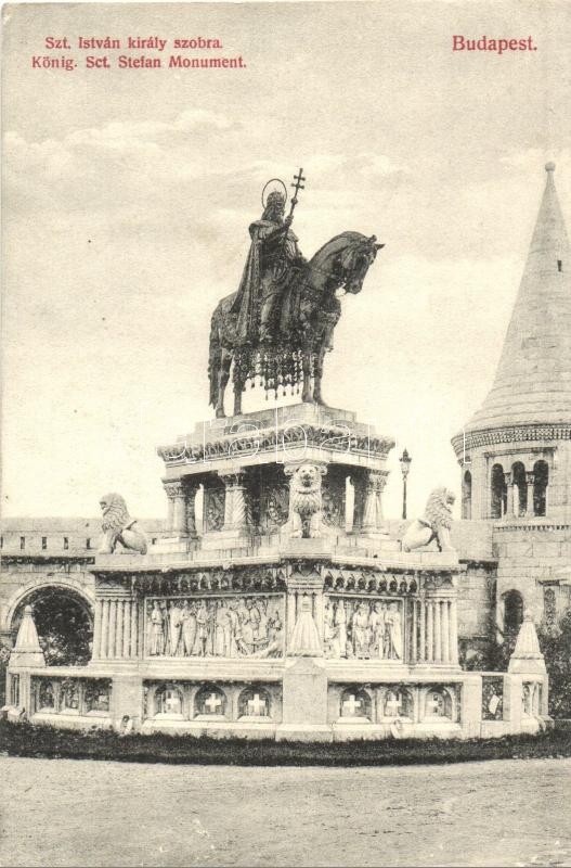 Budapest I. Halászbástya, Szent István szobor (EK) https://www.darabanth.com/de/327-Fernauktion/327.0/Ansichtskarten/Ungarn~1000006/Budapest-I-Halaszbastya-Szent-Istvan-szobor-EK~II1818932