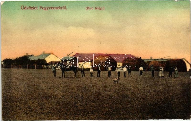 Fegyvernek, Bíró telep, Bíró kastély gazdasági épületei, aratók. Szige... https://www.darabanth.com/de/327-Fernauktion/327.0/Ansichtskarten/Ungarn~1000006/Fegyvernek-Biro-telep-Biro-kastely-gazdasagi-epuletei-aratok-Szigeti-Henrik-kiadasa-E~II1633068