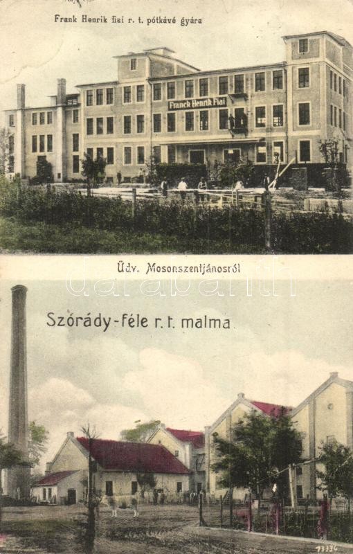 Mosonszentjános, Jánossomorja; Frank Henrik fiai rt. pótkávé gyára, Sz... https://www.darabanth.com/de/327-Fernauktion/327.0/Ansichtskarten/Ungarn~1000006/Mosonszentjanos-Janossomorja-Frank-Henrik-fiai-rt-potkave-gyara-Szorady-fele-malom-Bir~II1610645
