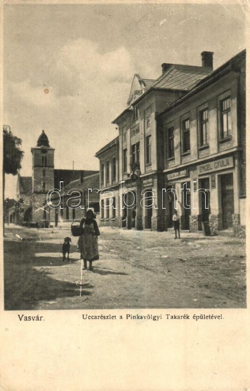 Vasvár, utca, Pinkavölgyi Takarék épülete, Engel Gyula és Eckstein Jen... https://www.darabanth.com/de/327-Fernauktion/327.0/Ansichtskarten/Ungarn~1000006/Vasvar-utca-Pinkavolgyi-Takarek-epulete-Engel-Gyula-es-Eckstein-Jeno-uzlete~II1824024