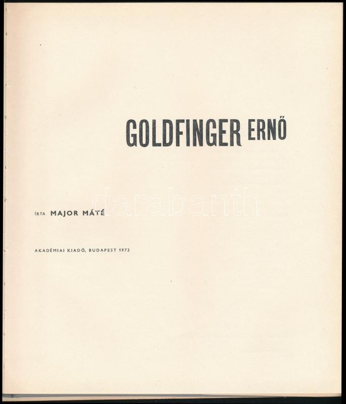 Major Máté: Goldfinger Ernő. Architektúra. Bp., 1973, Akadémiai Kiadó.... https://www.darabanth.com/de/327-Fernauktion/327.0/Bucher/Bucher-Architektur-Kunst~2500006/Major-Mate-Goldfinger-Erno-Architektura-Bp-1973-Akademiai-Kiado-Gazdag-fekete-feher-kC3~II1820483