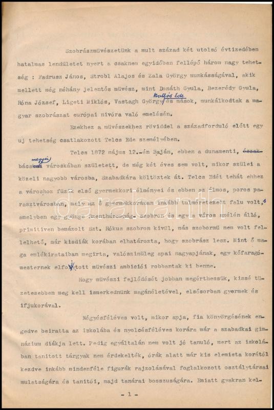Telcs Ede (1872-1948) szobrász- és éremművészről írt, befejezetlen tan... https://www.darabanth.com/de/327-Fernauktion/327.0/Bucher/Bucher-Architektur-Kunst~2500006/Telcs-Ede-1872-1948-szobrasz-es-eremmuveszrol-irt-befejezetlen-tanulmany-azonositatlan~II1823294