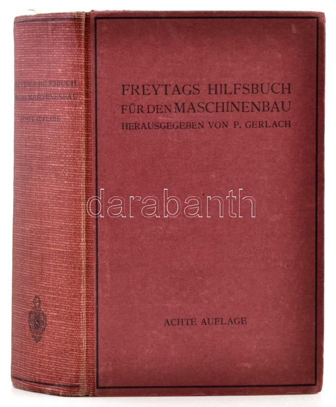 Freytags Hilfsbuch für den Maschinenbau für Maschineningenieure sowie für den Unterricht an technischen Lehranstalten. Szerk.: P. Gerlach. Berlin, 1930, Julius Springer. Nyolcadik kiadás. Kiadói félvászon-kötés, kissé kopott borítóval, német nyelven. / Half-linenbinding,with little bit cover, in German language.