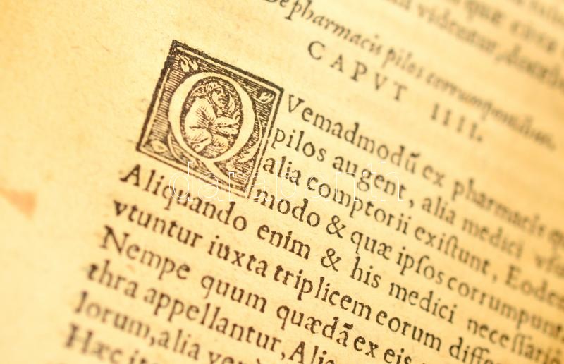 Claudii Galeni Pergameni: De Compositione Pharmacorum Localium, Libri Decem. Iano Cornario medico interprete. Lugduni (Lyon), 1549, Gulielmum Rovillium (Guillaume Rouillé),(Philibertus Rolletius-Bartholomaeus Fraenus-ny.) 32+831 p. Latin nyelven. Korabeli figurális díszítésű, vaknyomott egészbőr-kötésben, a borítón 1553-as évszámmal, kissé sérült gerinccel és kötéssel. Néhány lapszéli bejegyzésekkel, aláhúzásokkal. Egy lap (829-830. fénymásolattal pótolt)/ Leather-binding, with 1553 date on the cover, Figure imprinted leather cover, with damaged spine, cover, and binding, with notices, in Latin language. 1 page substituted with copy.