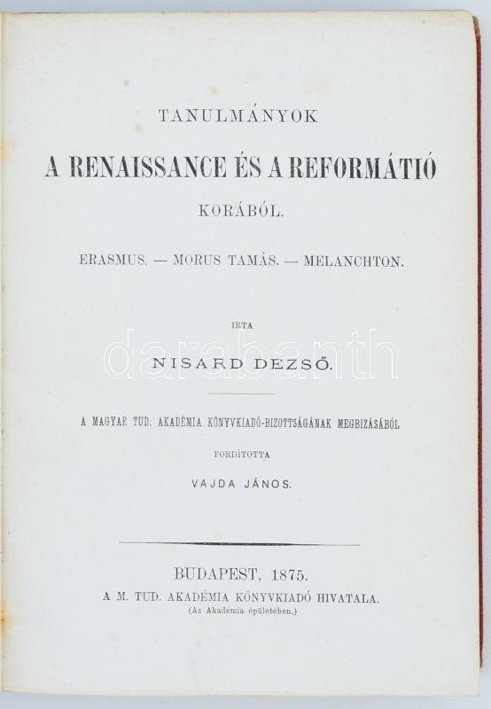 Nisard Dezső: Tanulmányok a renaissance és a reformáció korából. Budap... https://www.darabanth.com/de/327-Fernauktion/327.0/Bucher/Bucher-Sozialwissenschaften~2500010/Nisard-Dezso-Tanulmanyok-a-renaissance-es-a-reformacio-korabol-Budapest-1875--MTA-Arany~II1647285