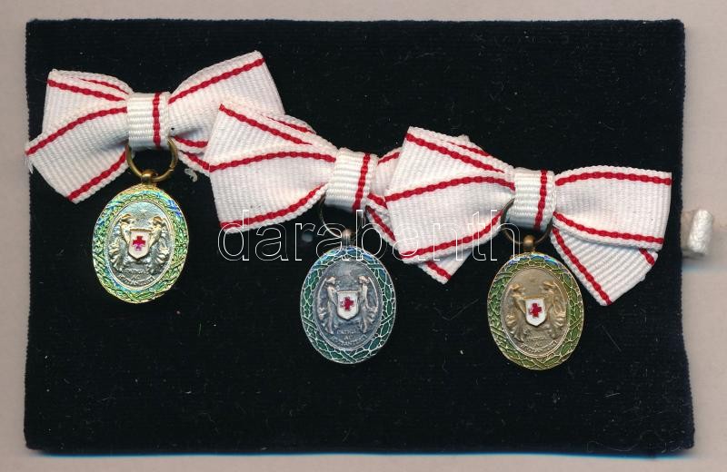 Osztrák-Magyar Monarchia ~1914. "Vörös Kereszt Díszérme" 3xklf zománcozott fém miniatűr kis szalagokon T:1-,2