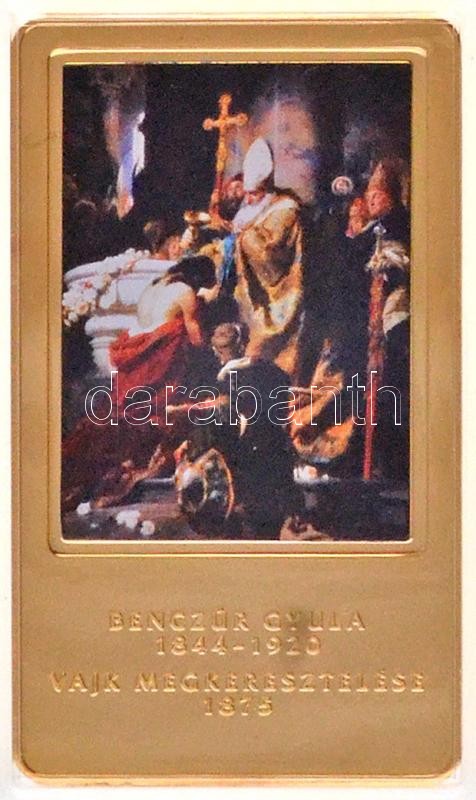 Beschreibung: 2014. "A magyar festészet remekművei / Benczúr Gyula 1844-1920 / Vajk megkeresztelése 1875" aranyozott, multicolor Cu emlékérem (35x60mm) T:PP