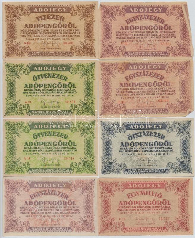 Beschreibung: 1946. 8db-os adópengő tétel T:III több szép papírral