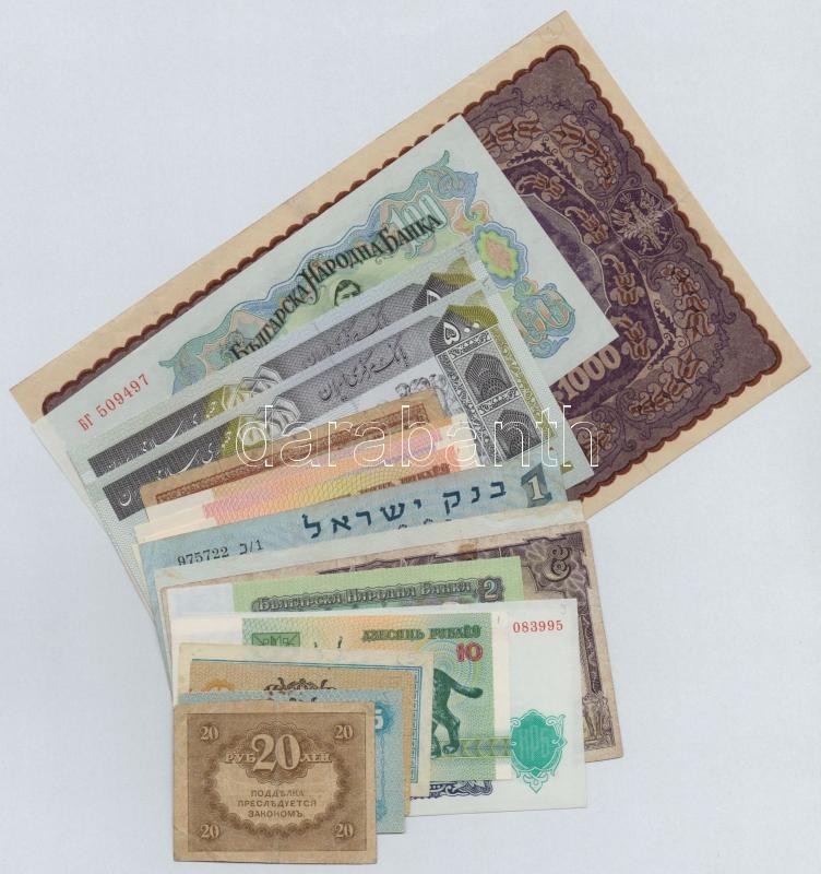 21db-os vegyes külföldi bankjegy tétel érdekesebb darabokkal, közte Bulgária, Fehéroroszország, Irán T:I-III