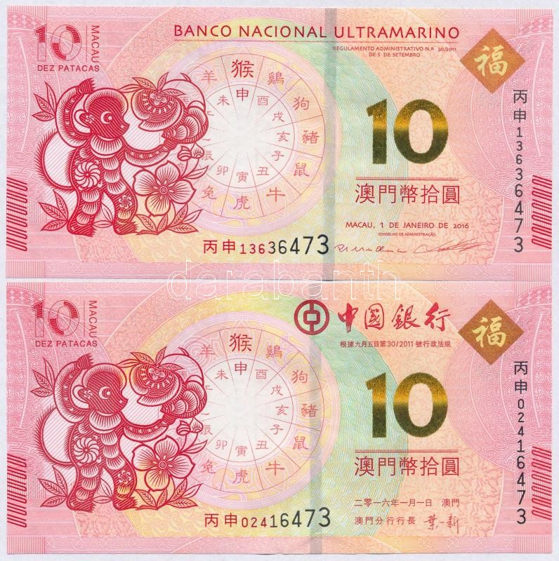 Macau 2016. 10 Patacas (2xdiff) C:UNC https://www.darabanth.com/de/327-Fernauktion/327.0/Numismatik/Weltweit-Banknoten~2000012/Makao-2016-10P-2xklf-TI-Macau-2016-10-Patacas-2xdiff-CUNC~II1819425