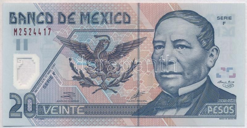 Mexico 2001. 20 Pesos C:UNC https://www.darabanth.com/de/327-Fernauktion/327.0/Numismatik/Weltweit-Banknoten~2000012/Mexiko-2001-20P-TI-Mexico-2001-20-Pesos-CUNC~II1822809