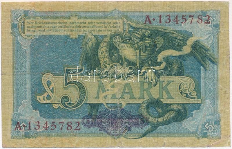 Beschreibung: Német Birodalom 1904. 5M hét számjegyű sorszám T:III